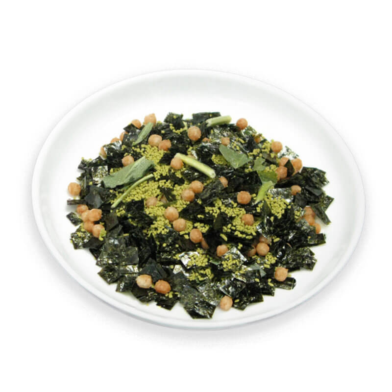 | 原材料表記 | 調味顆粒(食塩、乳糖、抹茶)(国内製造)、海苔、あられ、乾燥みつば / 調味料(アミノ酸等)、(一部に乳成分を含む) |