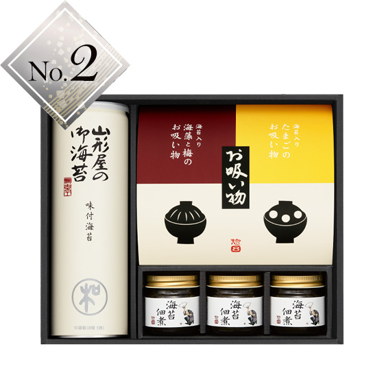 厳選された海苔を香ばしく仕上げた味付海苔、ご飯のお供にぴったりな佃煮、そしてお湯を注ぐだけで簡単にお召し上がりいただけるフリーズドライのお吸い物。