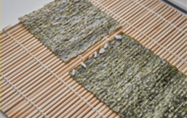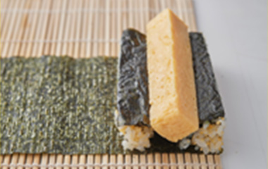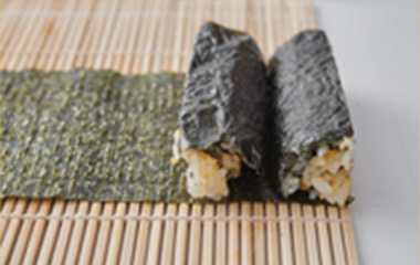 | イ.焼海苔 | 板のりを横に2等分したサイズ 3枚(1枚と1/2枚をご飯で接着して長さを作る) |